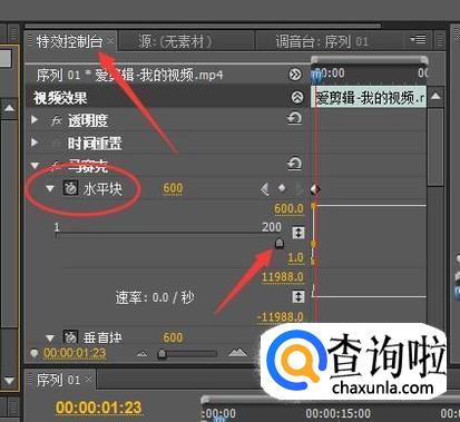 再找到特效控制台,找到马赛克的水平块,将滑块拉动调水平方向的马赛克。