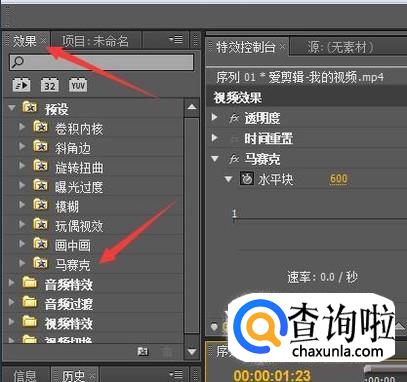首先,导入好视频,再找到效果面板,找到马赛克点击。