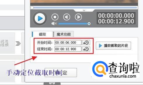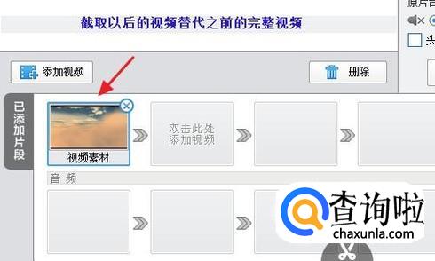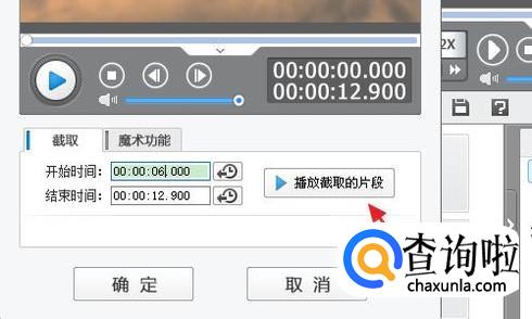点击右侧的“播放截取的片段”,可以查看截取效果;没有问题的话,依旧点击该页面下方的确认,然后刚才添加视频的地方就变成了这段截取过的视频文件了;