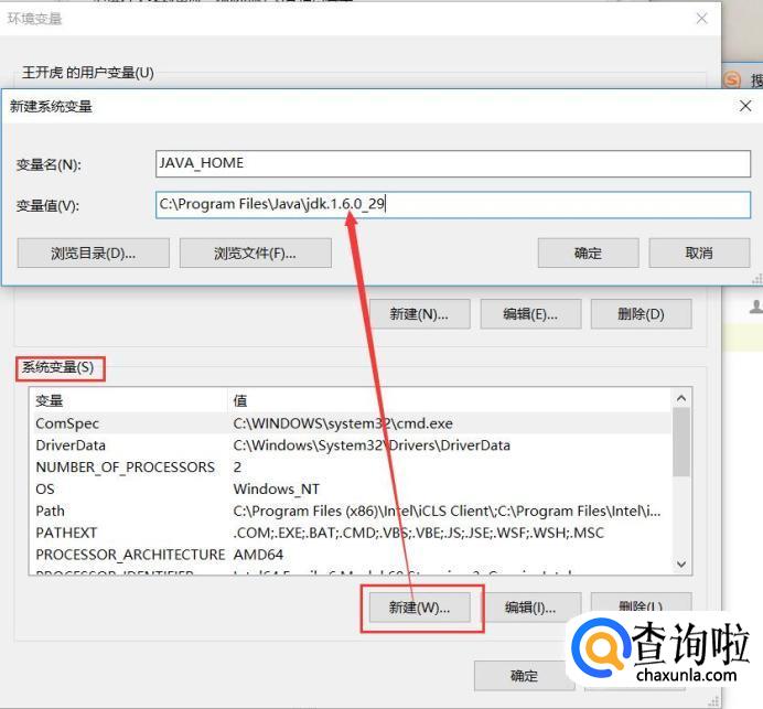 点击系统变量下面的新建按钮,变量名JAVA_HOME(代表你的JDK安装路径),值对应的是你的JDK的安装路径。