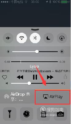 在手机任意界面的底部往上划动,调出控制面板,点击【Airplay】。