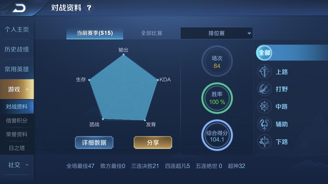 输出英雄KDA更高:所以不难发现,我们的数据=了KDA的高低,而在游戏当中,一般是输出英雄的KDA相比较坦克和辅助,一定是要好的,所以输出英雄可以拿到比较高的KDA。