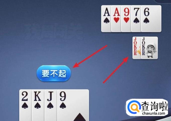 对方出了A后,我们要不起,但他还有7和9,在出7时,我们出K就顺利过关了。