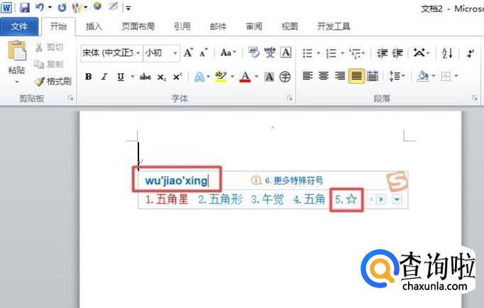 我们切换到搜狗拼音输入法,然后输入wujiaoxing,之后我们就可以看到第5选项就是五角星,我们按键盘上的5;