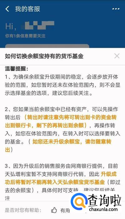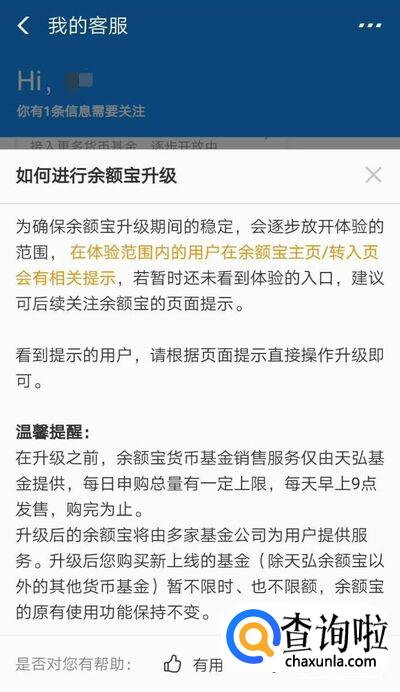 更换基金必须先升级余额宝。