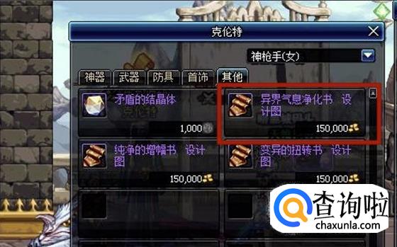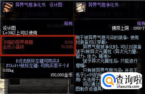有了设计图之后,准备好100个金色小晶体和10个浓缩的异界精髓,用异界气息净化书设计图制作出异界气息净化书即可。