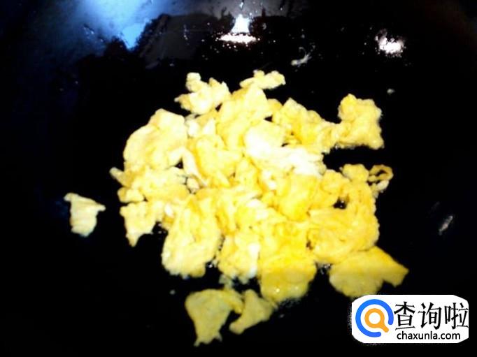 用锅把鸡蛋炒出来,炒至八分熟,盛出备用。