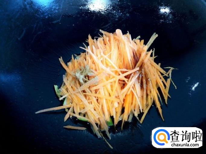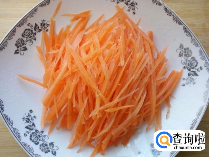 胡萝卜去皮,用水清洗干净,控干水分,切成丝。