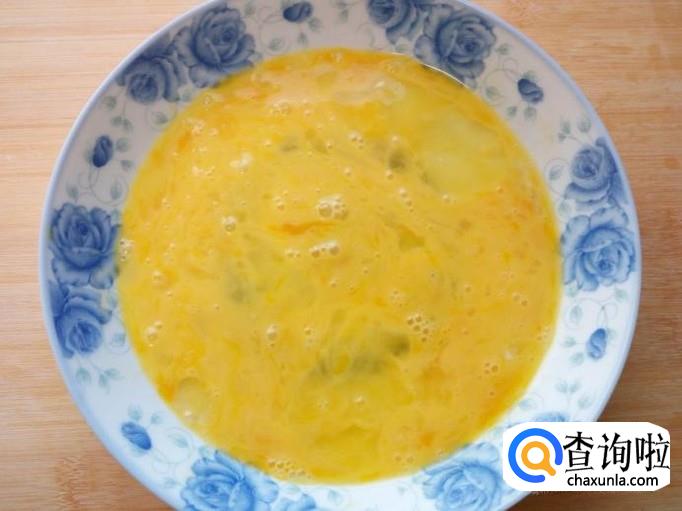 鸡蛋打入盘中,搅拌成鸡蛋液。