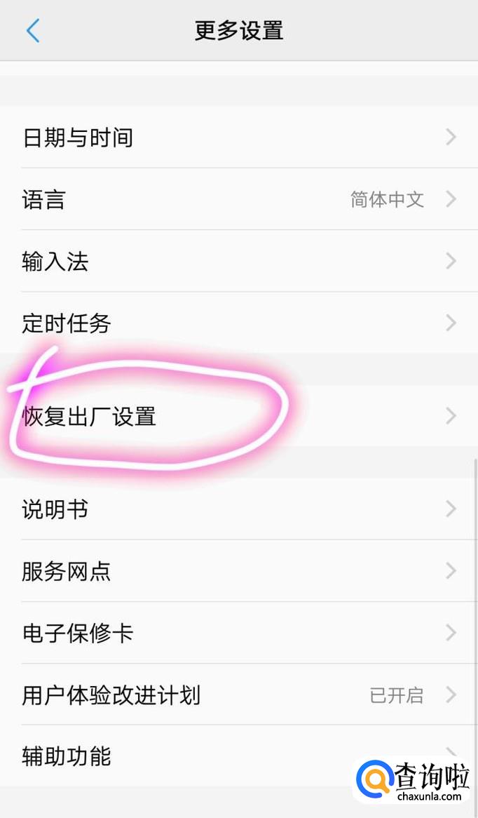 进入后,便可以看到“恢复出厂设置”这几个字,点击这一部分。