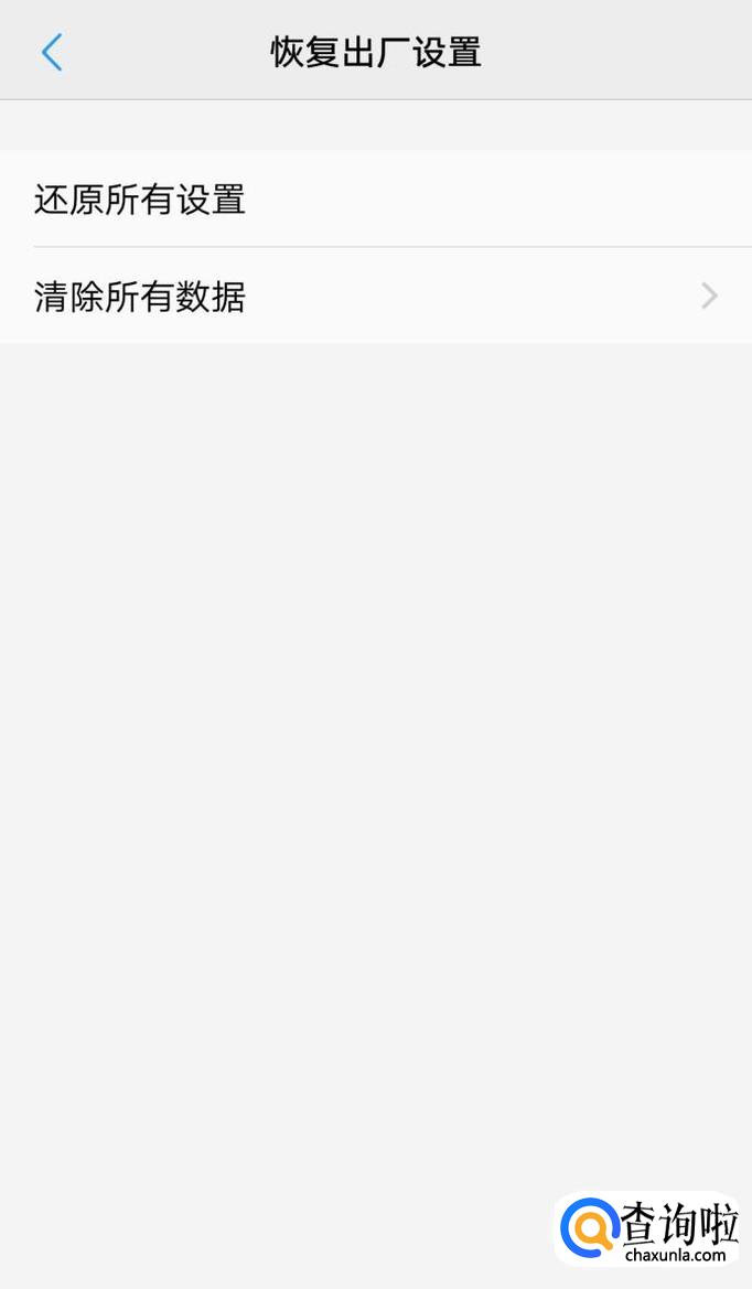 点击后,会出现下图这一界面,可以选择还原所有设置,也可以选择把所有数据清除后再还原。关机重启后便完成恢复出厂设置,便可以对手机重新下载软件进行设置了。