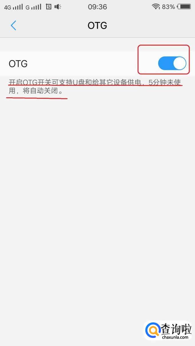 点击一下,如图所示,在“OTG”界面把按钮打开,设置就完成了。