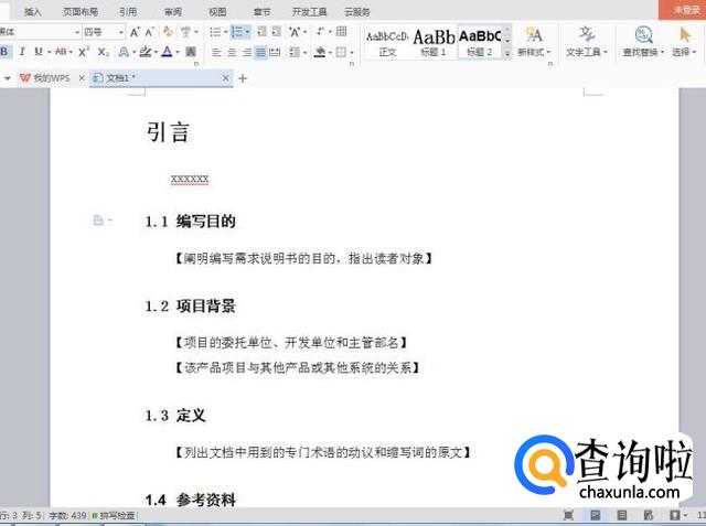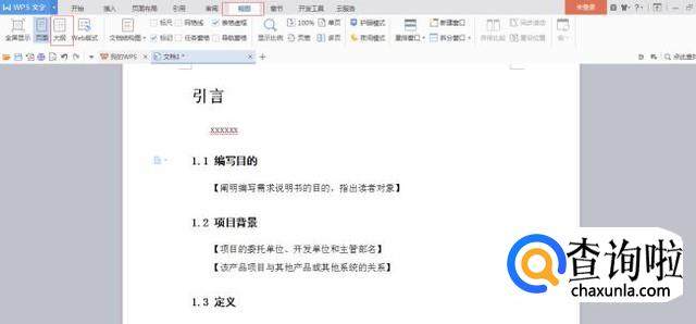 在如下图红色方框位置,确定1级目录、2级目录、3级目录、正文。可以先选择【引言】这个文字,引言是1级目录,就选择1级。【1.1编写目的】是2级目录,就选择2级;【阐明编写需求说明书的目的,指出读者对象】为正文,就选择正文文字。接下来也是一样,以此类推。