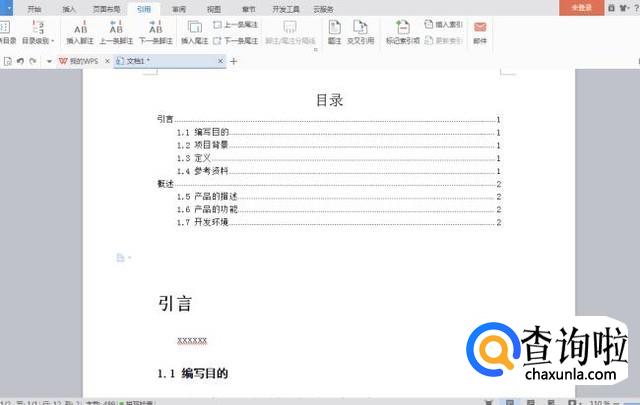 在第三步已经完成之后,我们就点击【关闭】,返回到正文的页面。在正文的页面插入目录。