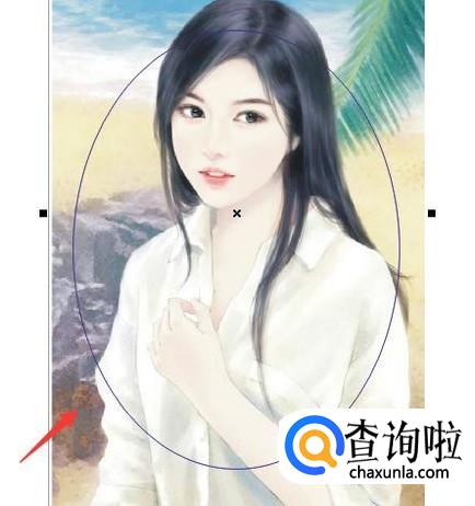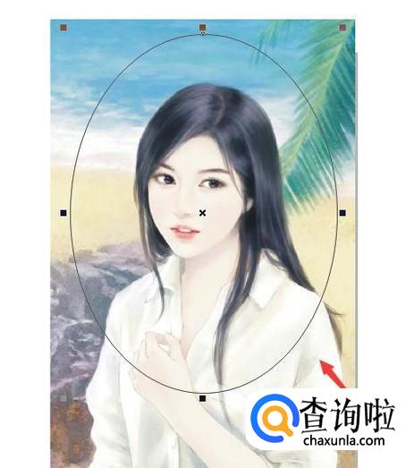 选择椭圆形工具在图片上绘制一个椭圆形,如图所示: