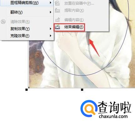 调节好图片之后然后再在图框精确裁剪选项里的结束编辑选项,如图所示: