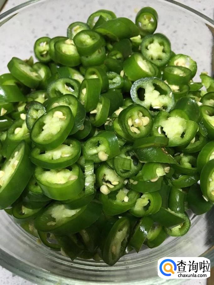 线辣椒绿色的比较嫩,红色得比较老成。今天我主要选择绿色的线辣椒,口感会微辣略带些清香味。首先清洗好线辣椒,晾干水份摘掉辣椒把待用。