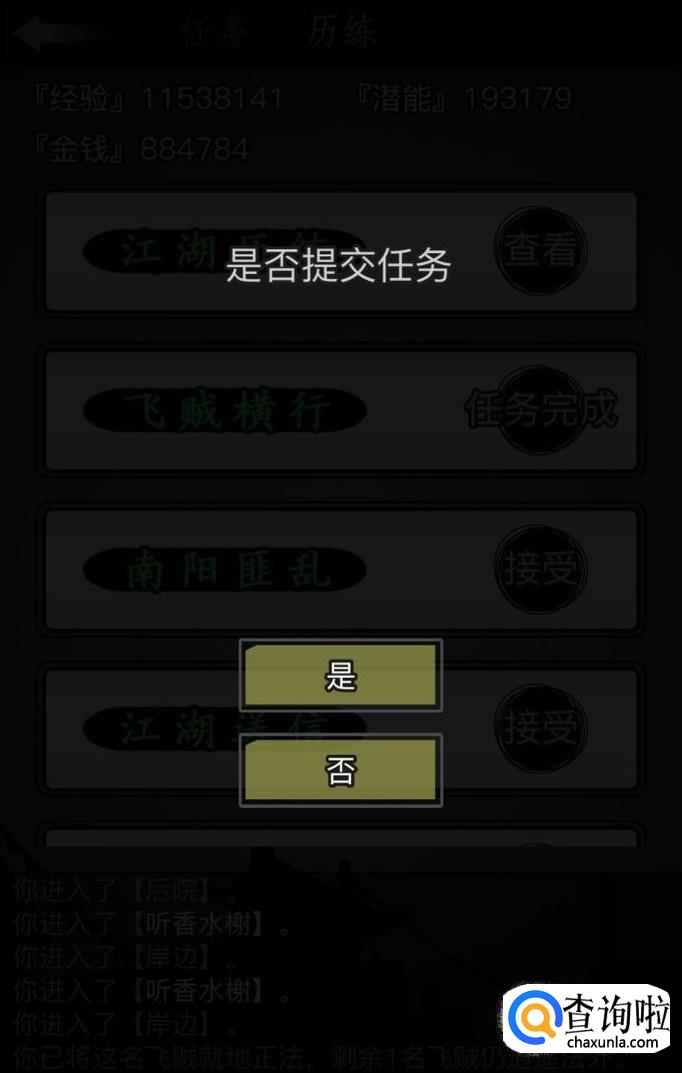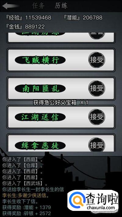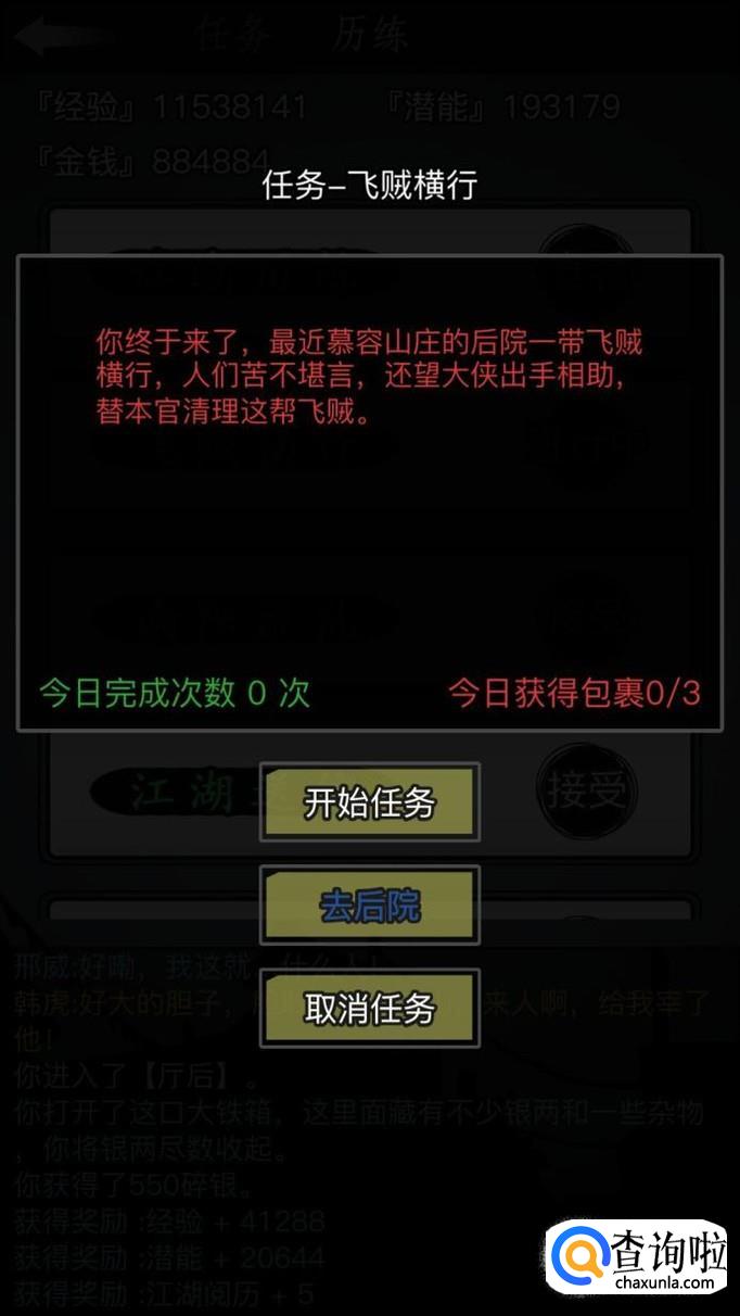 相应的这个任务我认为是最难的,因为越到后面飞贼的数量会增多,但是这个任务获得的包裹里面的好东西比较多可以开出丹药之类的东西。