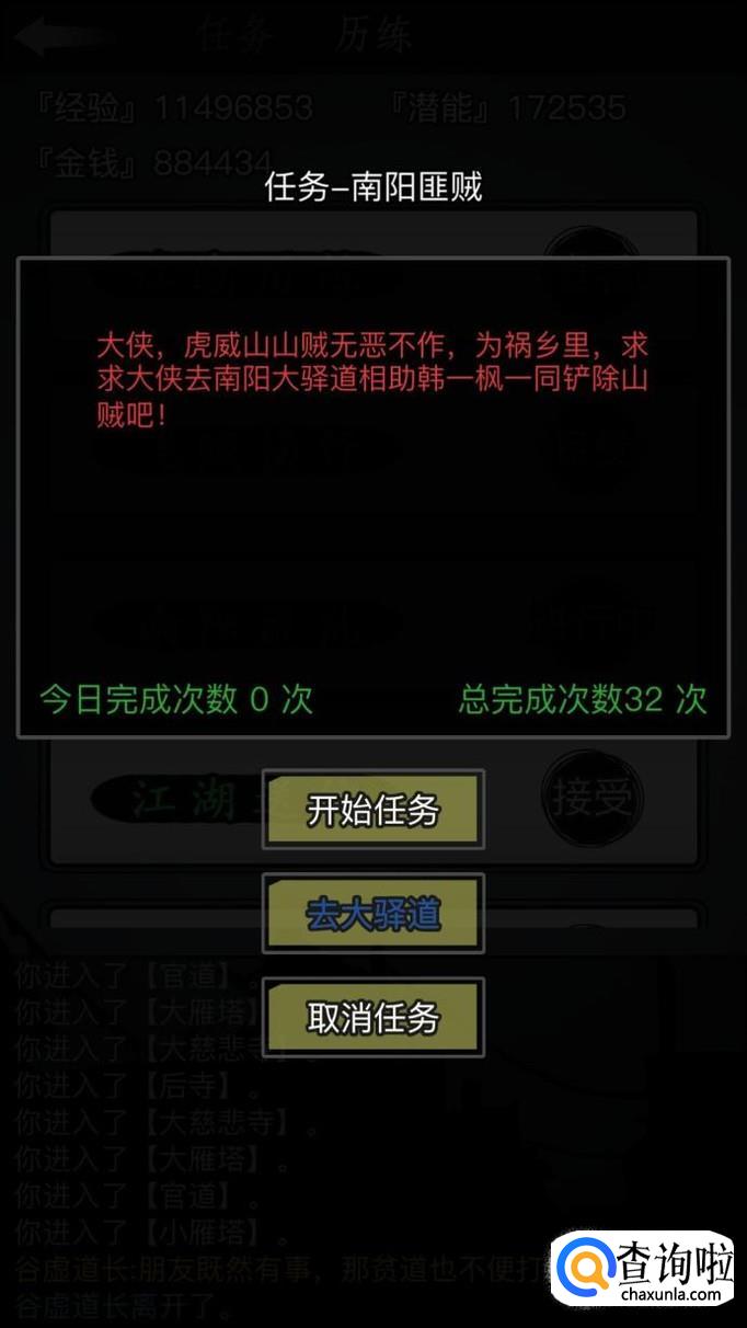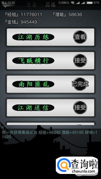 这个游戏最大的一个特点就是挂机,挂机我们可以获得任务等级经验还有潜力,潜力是用来升级的,所以挂机是非常重要的,我们除了做历练任务的时候,挂机不能停止。