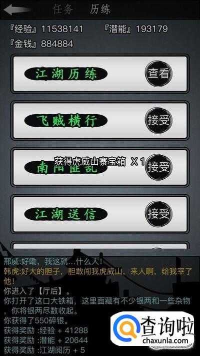 然后每天必须要做的是历练任务,通过历练任务我们可以获得宝箱开出各种丹药。当然挂机的时候不能做任务,做任务的不能挂机。接下来我就来分别给大家介绍这几个任务。