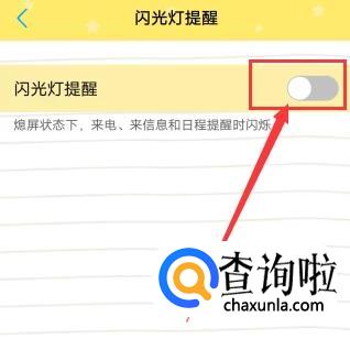 将闪光灯提醒后面的开关开启,在熄屏状态下接收来电、信息和日程提醒时闪光灯会闪烁。