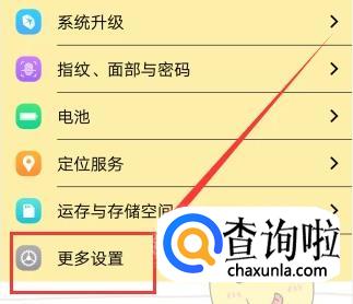 首先在桌面找到并且点击设置,往下滑动找到并打开更多设置。