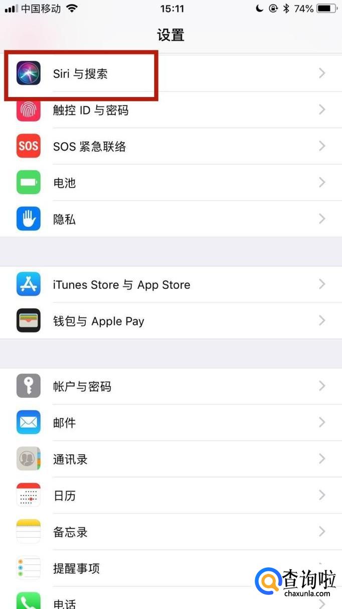 然后点击Siri与搜索,如下图所示。