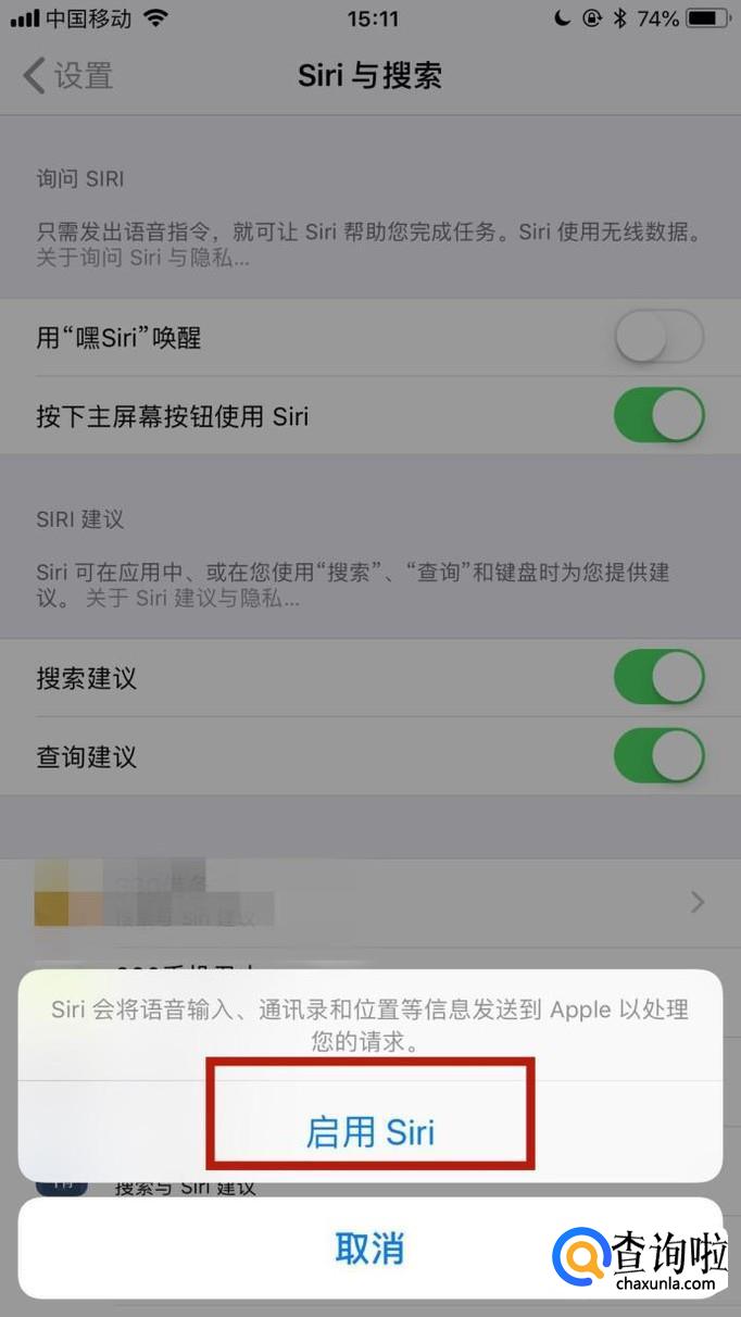 然后点击启用Siri,如下图所示。