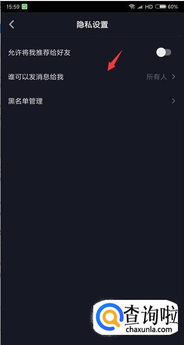 接着我们会看到谁可以发消息给我,点开进入下一步。
