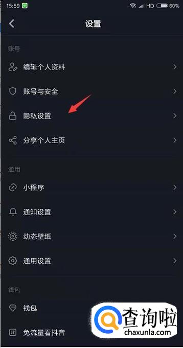在设置的所有选项里面会看到隐私设置,点击一下。