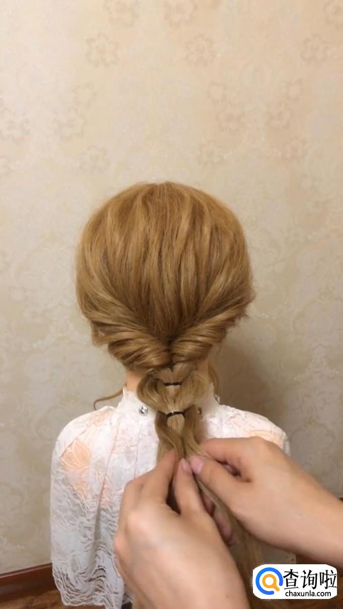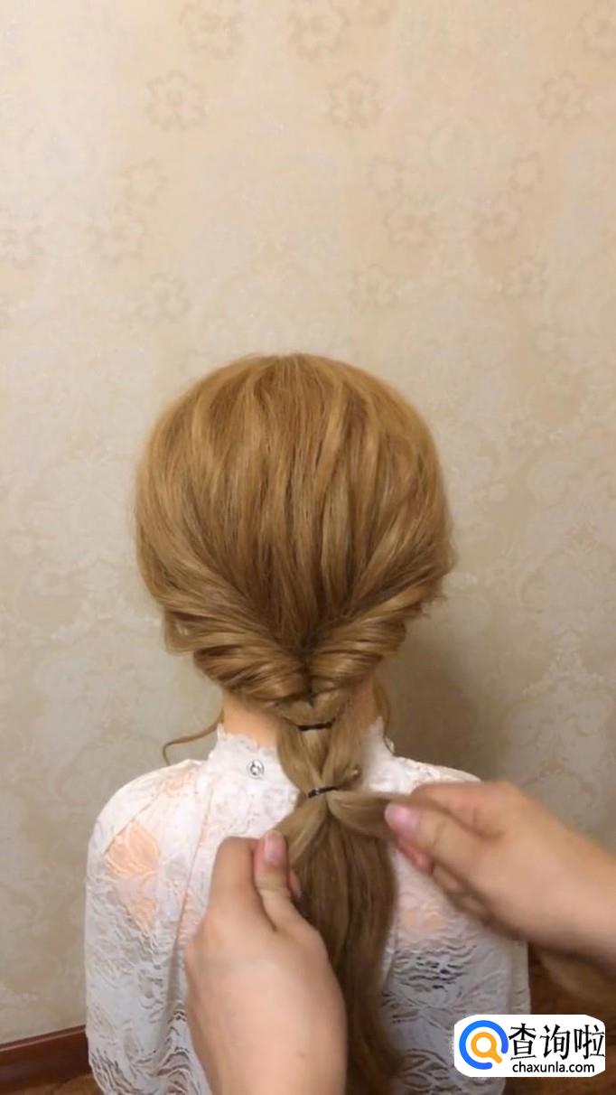 扎完后,将最后一个辫子向内翻转,再将扎好的辫子轻轻拔出少许,营造蓬松感。