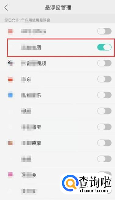 进入悬浮窗管理页面,即可对各个软件的悬浮窗进行设置,如图所示。