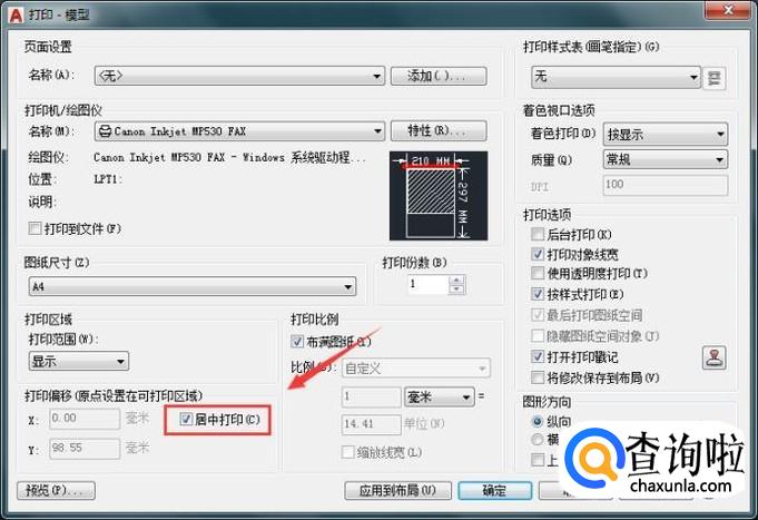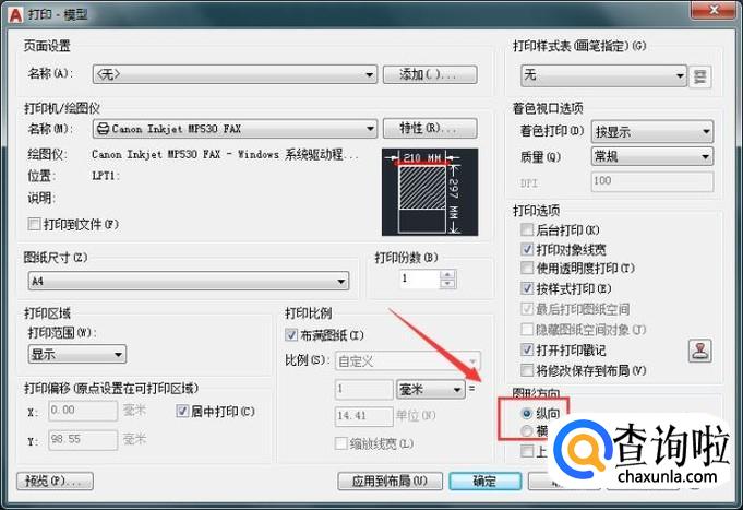 勾选居中打印之后,再找到图形方向选项,设置打印的方向,然后点击确定就可以打印了,如图所示: