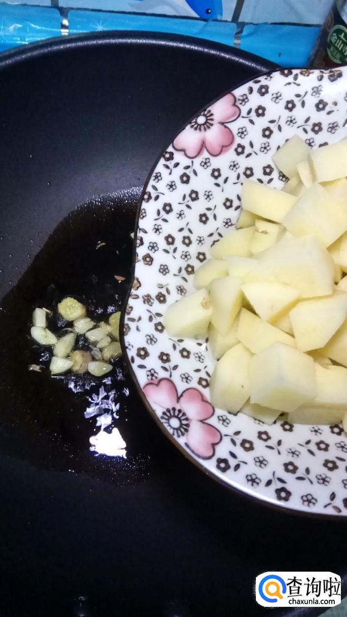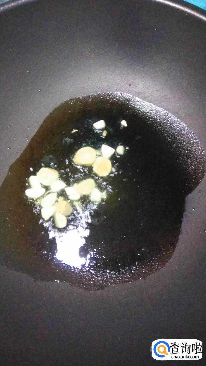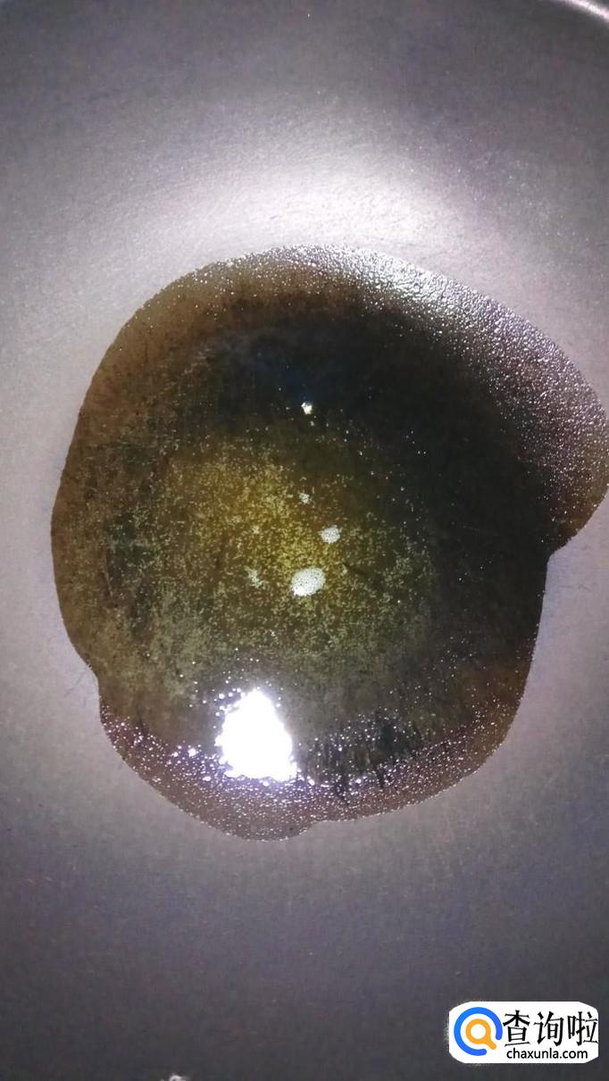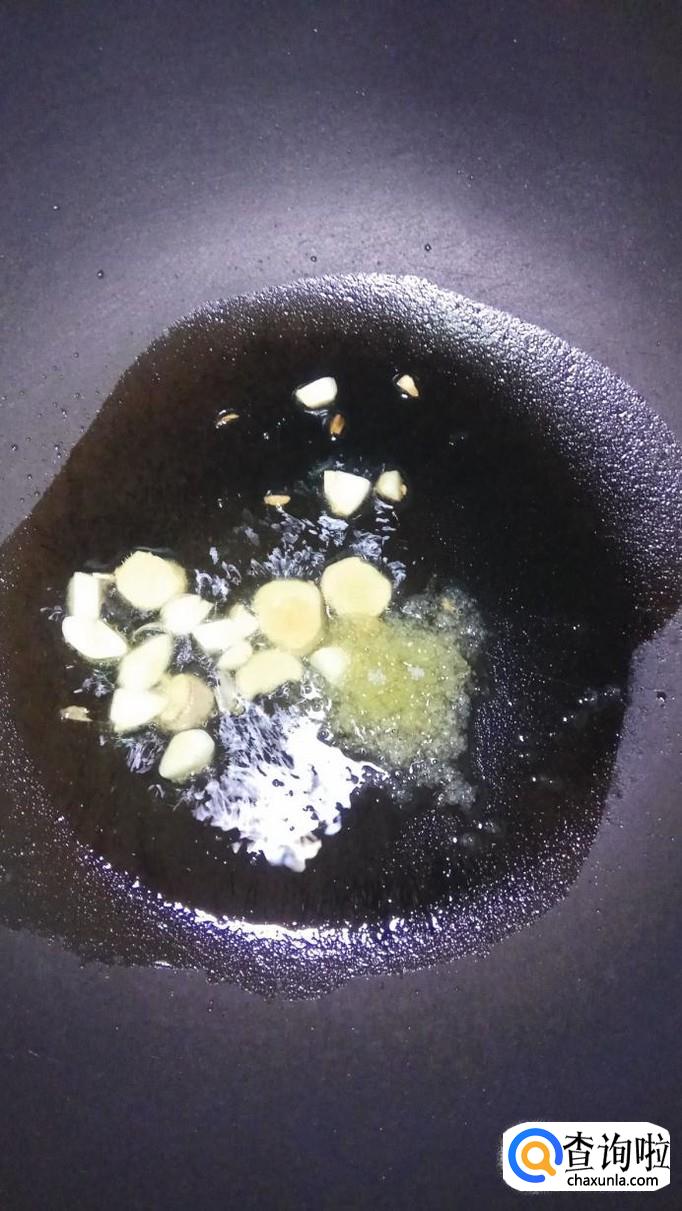 锅中烧热油,油热后将蒜片和姜丝放入锅中炒香,再放入一勺白砂糖,小火煎至变色。