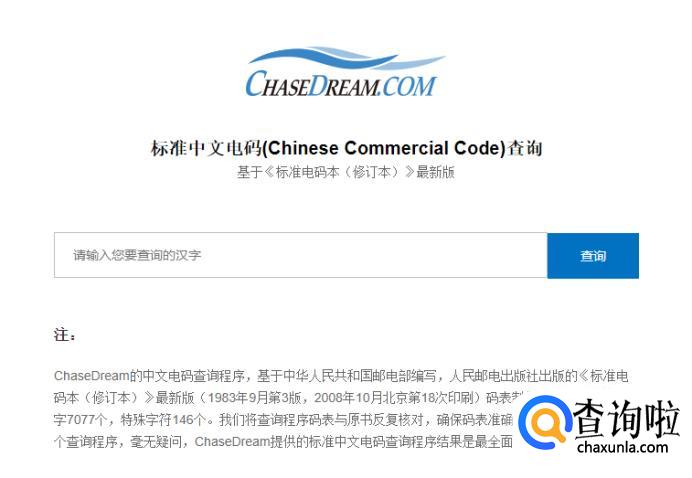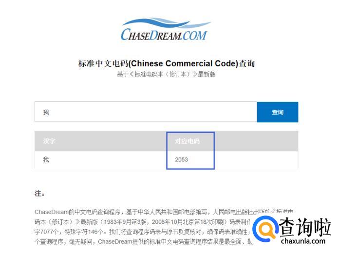 国内的中文电码以中华人民共和国邮电部编写,人民邮电出版社出版的《标准电码本(修订本)》为规范,原理就是用0000-9999表示共计一万个汉字+字母+符号。可以进入https://apps.chasedream.com/chinese-commercial-code/这个网址进行查询。
