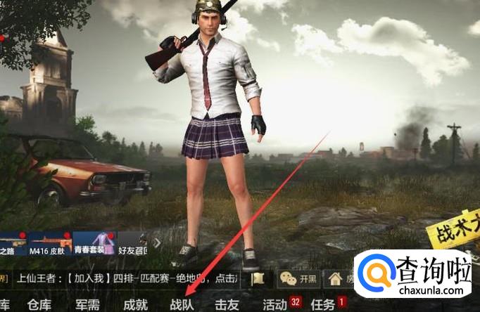 首先登录到游戏的客户端如下图,然后在最下面找到战队,然后点击进入如下图。
