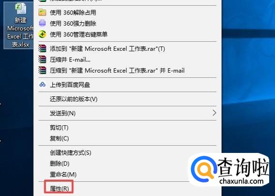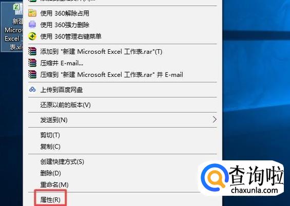 首先,我们右击电脑桌面上的一个Excel文档,弹出的界面,我们点击属性;