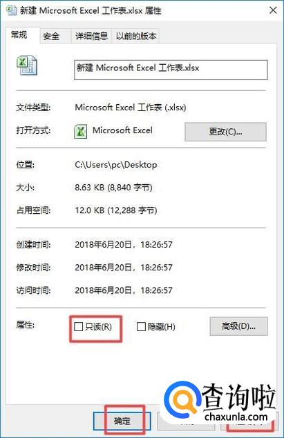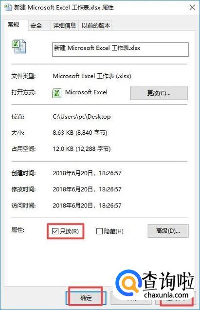 弹出的界面,我们将只读勾选上,然后点击应用,点击确定就可以了,这样Excel文档就是只读的属性了;