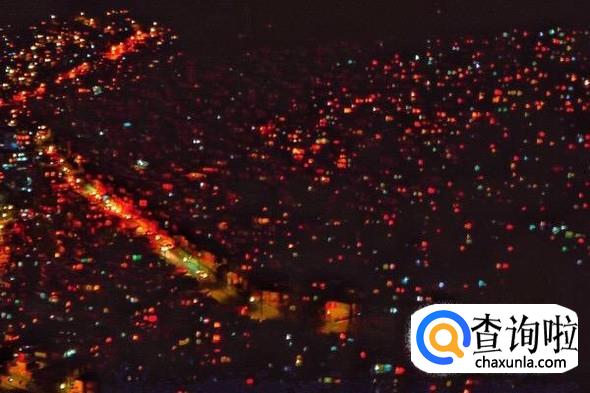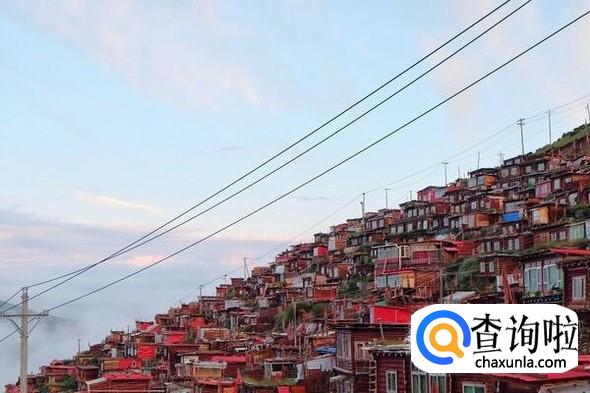 一天中不同的时刻,佛学院都有它不同的美。夜幕降临,车一直开到对面的山顶,遥望佛学院,漫山的红房子都开了灯,像漫天繁星。
