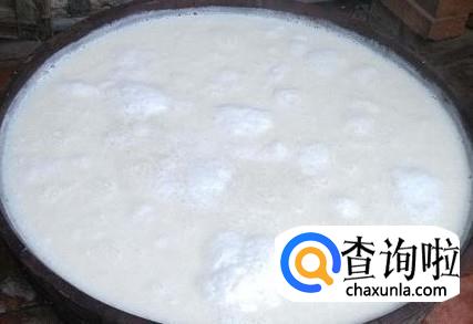使用大口锅将磨出的浆进行煮制,浆煮制时间一般不15分钟左右。