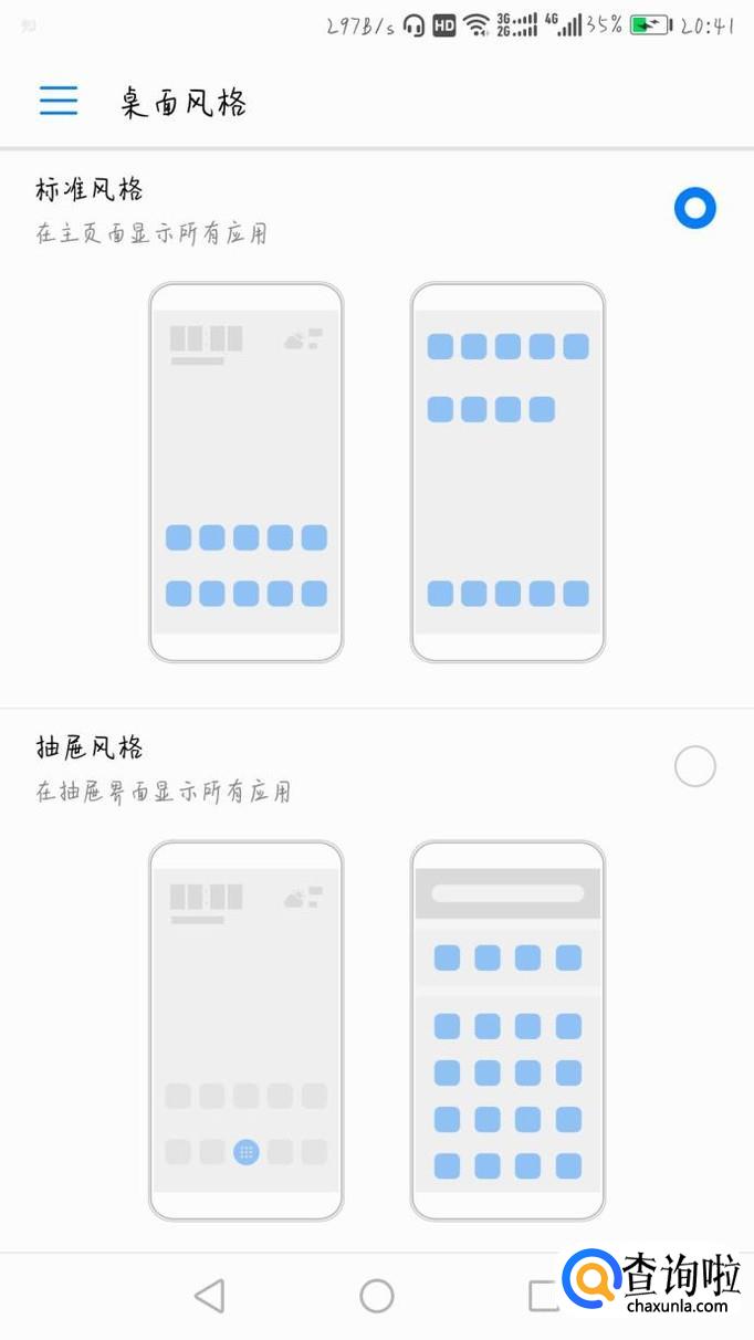 在手机的设置里,打开桌面风格,将标准风格改为抽屉风格,然后再找到隐藏应用,