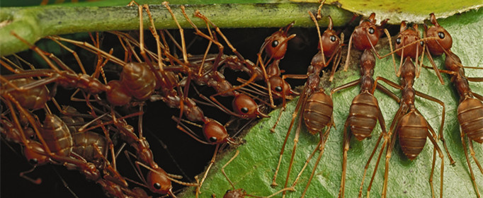 缝叶蚁生活在东南亚和澳大利亚热带森林的边缘地区。与许多种蚂蚁不同,缝叶蚁不在地面上建造巢穴,而是利用高挂在树上的叶子织巢。