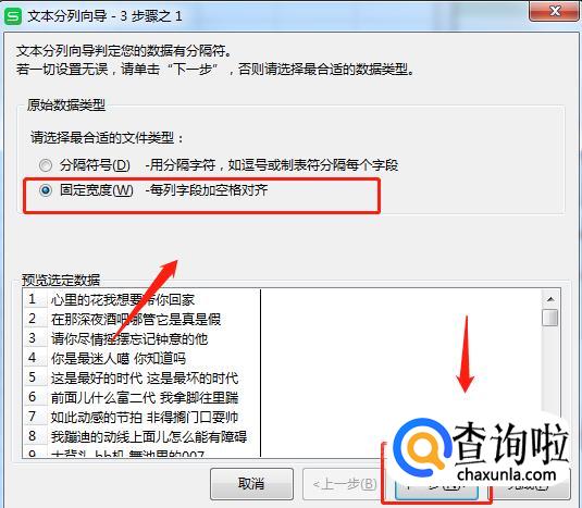 如果想按着固定宽度来进行分列,可以选择“固定宽度”分列,点击【下一步】,