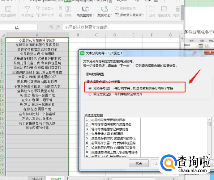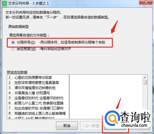 选择按分隔符号(分隔符号是指单元格本身就以一种方式)存在。例如:空格、分号等)。
