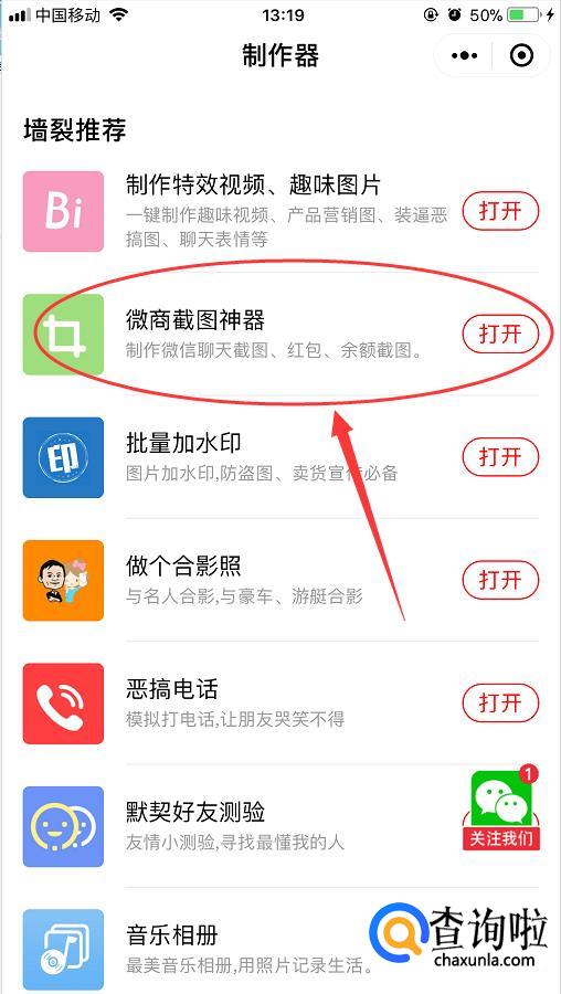 选择“微商截图神器”;