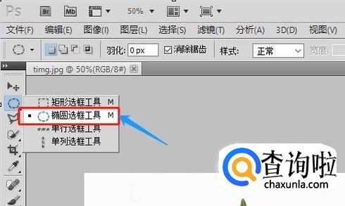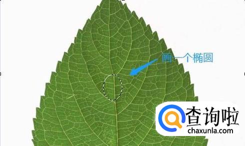 在左侧的工具里找到“椭圆选框工具”,使用它在叶子的任意部位画一个类似水珠的椭圆形状,如图所示;