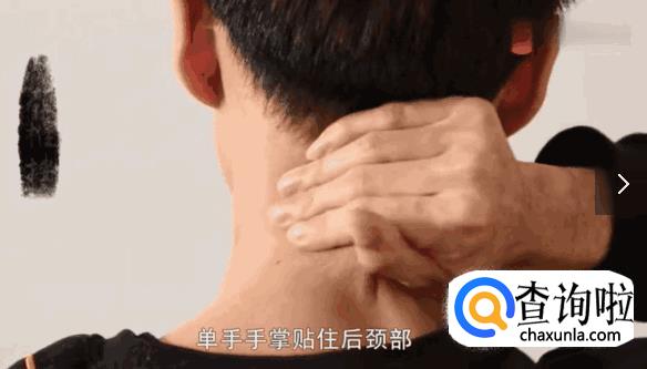 单手手掌贴住后颈部,手指指根部和掌根部同时用力,由上至下反复拿捏。