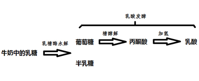 在无氧条件下,牛奶中原有的天然乳酸菌或人工添加的乳酸菌能够将牛奶中的乳糖分解产生大量乳酸,导致牛奶的pH值下降,牛奶变酸。而酸性条件又能够让牛奶中的乳酪蛋白发生凝集沉淀,从而使牛奶开始变稠,成为又酸又稠的酸奶。
