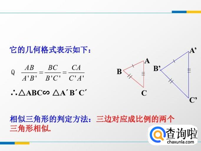 如果两个三角形的三组对应边的比相等,那么这两个三角形相似