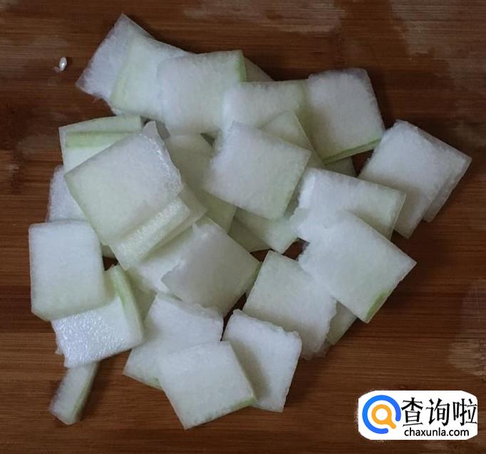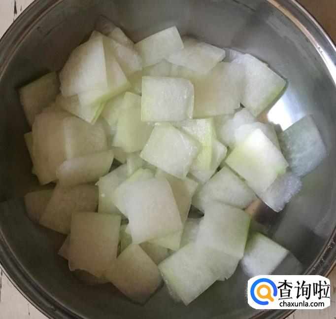 冬瓜一块400克左右切去外皮抠出瓜瓤和种子清洗干净后切成稍厚一点的冬瓜片备用